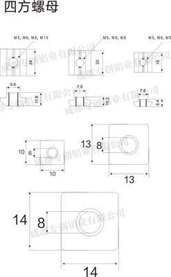 四方螺母安裝時需預(yù)塞至鋁型材槽內(nèi),用于在型材上連接各種配件。